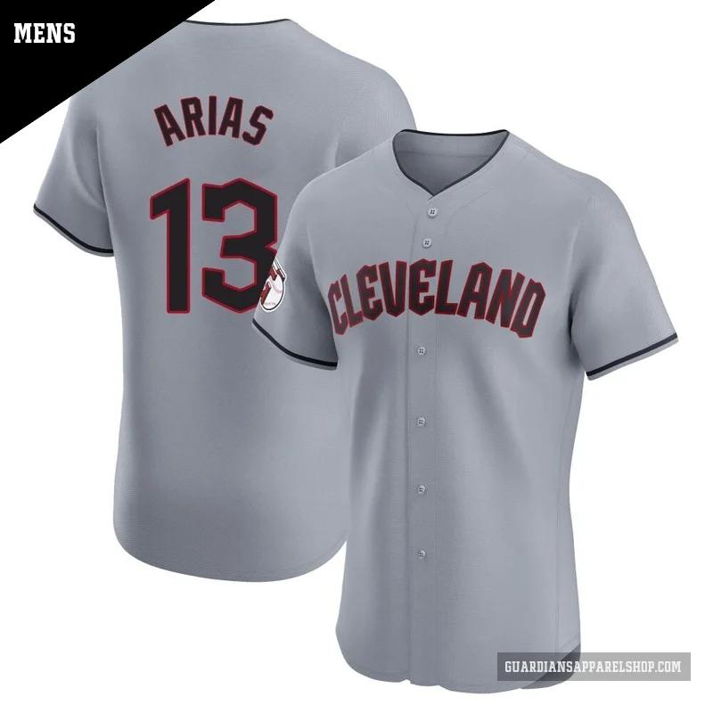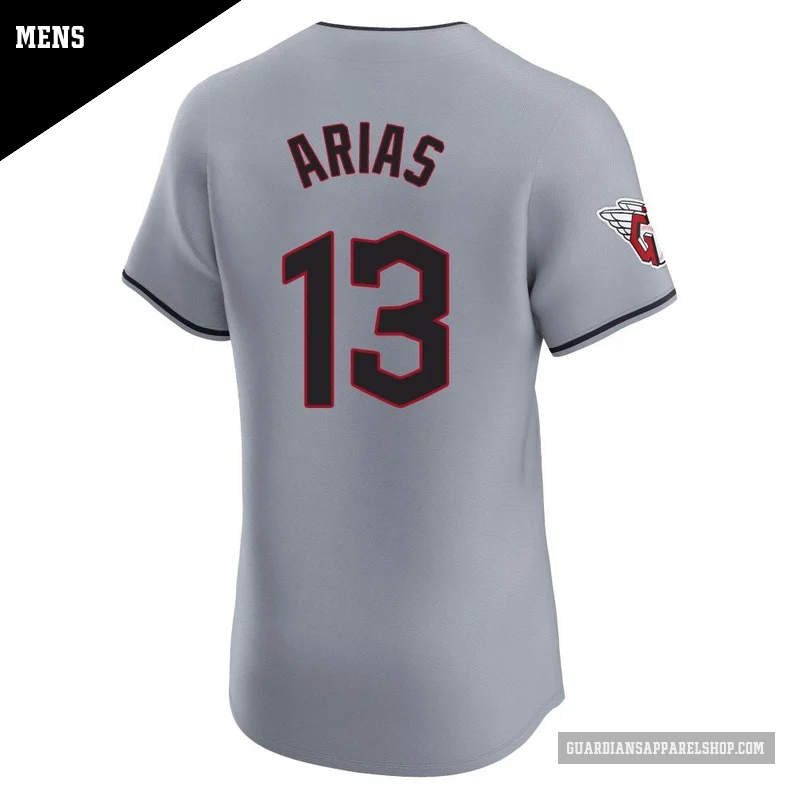 Wear Cleveland Guardians #13 Gabriel Arias Men's Gray Elite Road Jersey and experience the professionalism of elite players. Its advanced fabric keeps you cool and comfortable throughout the game, while the tailored design ensures exceptional freedom of movement. Proudly represent the spirit of Cleveland with the iconic identity of the Guardians. This jersey delivers a unique style both on and off the field, giving fans the confidence and energy to perform at their best every moment of the game.
